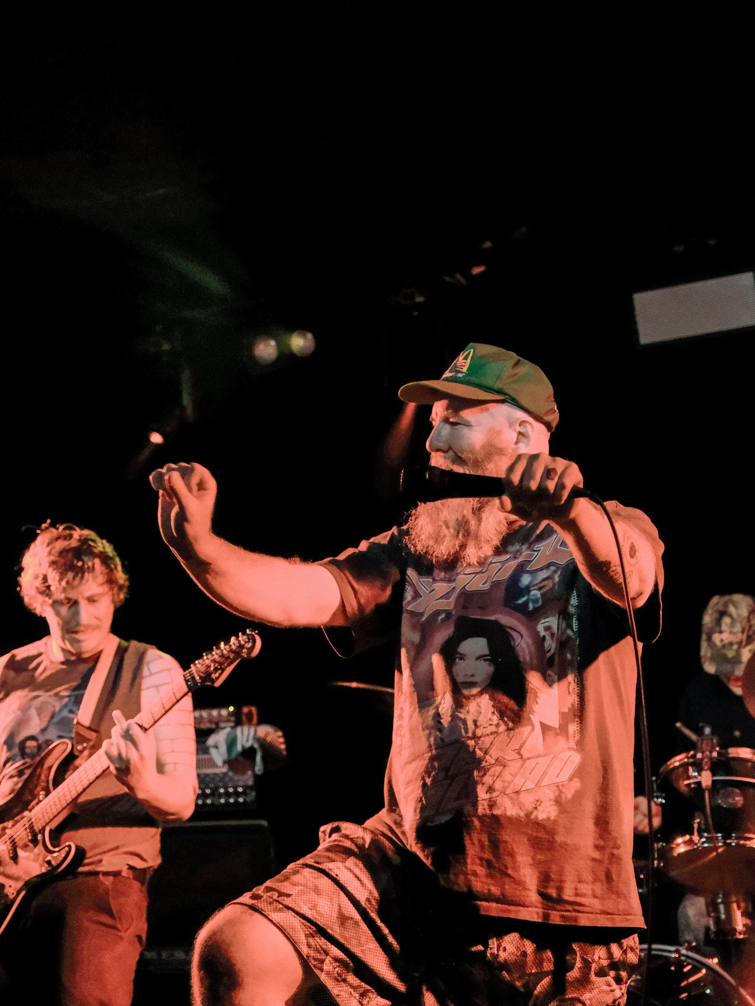 ‘Yeah, Coach’ brought the rampage altogether. At some point, Drew had vanished, only to have reappeared back at the merch table wearing the light that illuminated the merchandise on sale. Upon his return, he grabbed an eager punter and carried him atop his shoulders to The Ed Castle platform, dancing and ultimately, boosting the High Spirits of the entire production.